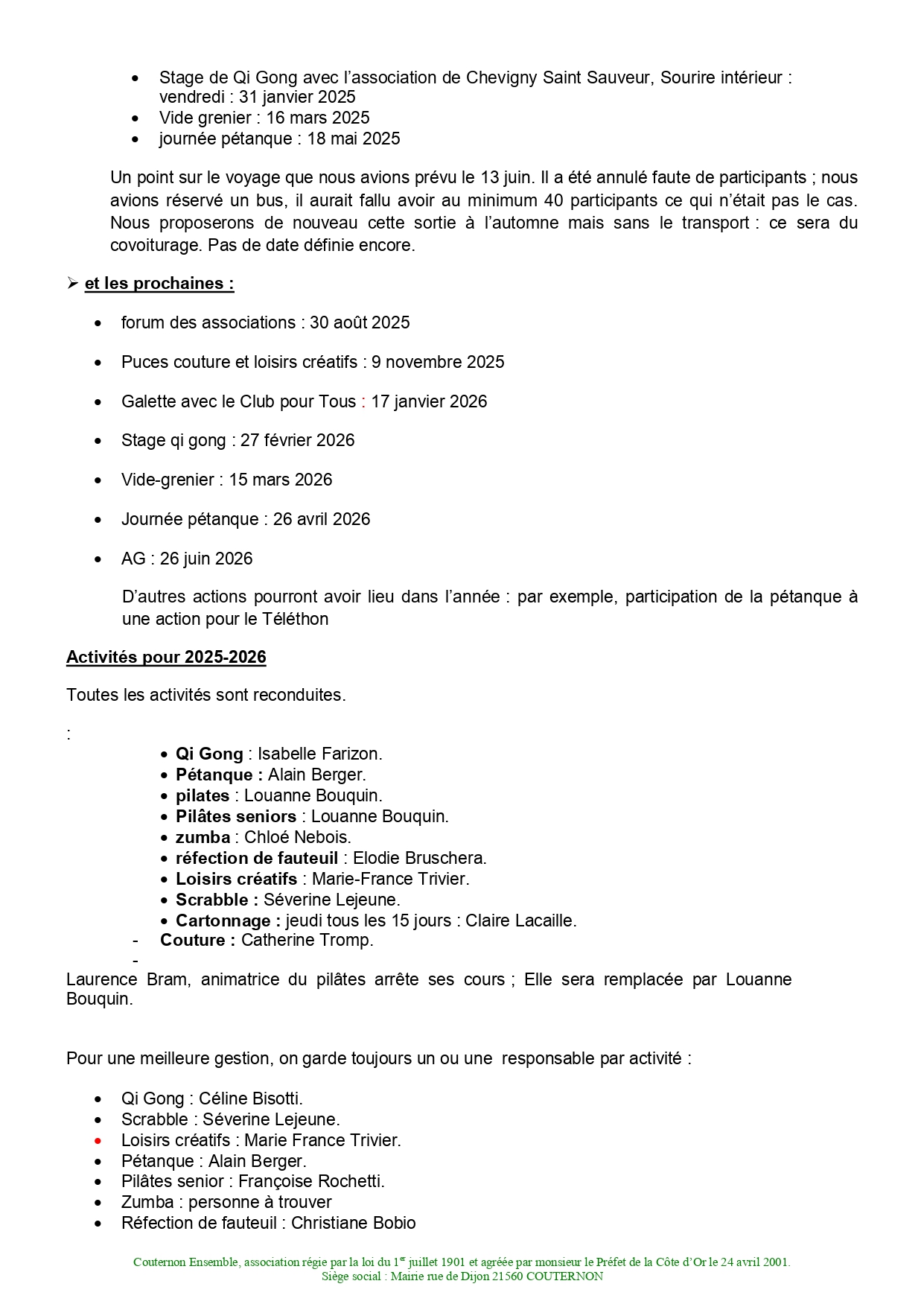 Sticky post Assemblée générale 2025 26 septembre 2025 / couternon ensemble 2025 Previous post Journée pétanque 2025 Next post A venir…